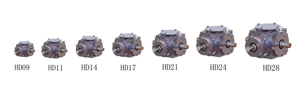 4、HD係(xì)列換向器共有七種規格,選型範圍大,輸出軸形式多樣,可滿足多種場合的需要。